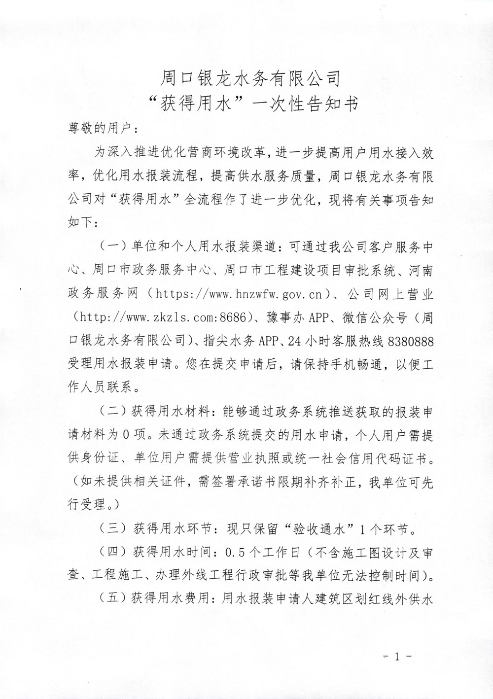 周口銀龍水務(wù)有限公司關(guān)于部分特業(yè)用戶辦理退費(fèi)的公告按照《河南省城鎮(zhèn)供水價(jià)格管理實(shí)施細(xì)則》和《周口市市場監(jiān)督管理局責(zé)令退款通知書》要求,特種用水類別不包括足浴、美容美發(fā)、養(yǎng)生休閑會(huì)所等行業(yè),經(jīng)公司研究決定...