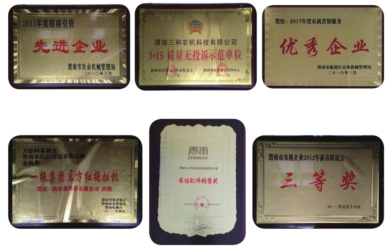 ? ? ? 公司成立以來,十分注重自身品牌建設,不斷引進先進的現(xiàn)代企業(yè)文化、管理制度、經營方法,依靠地域及自身優(yōu)勢,在激烈的農機市場競爭中不斷發(fā)展壯大,經營業(yè)績不斷攀升,連續(xù)多年三包服務質量良好,得到廠家的好評和信賴,在廣大用戶中樹立了良好形象,并獲得了一系列榮譽: